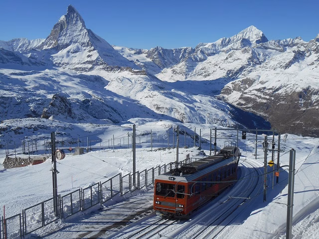 マッターホルンがきれいに見えるゴルナーグラート展望台までは登山鉄道で行くのですが、近づくにつれて自然と涙があふれてくるほど大感動!