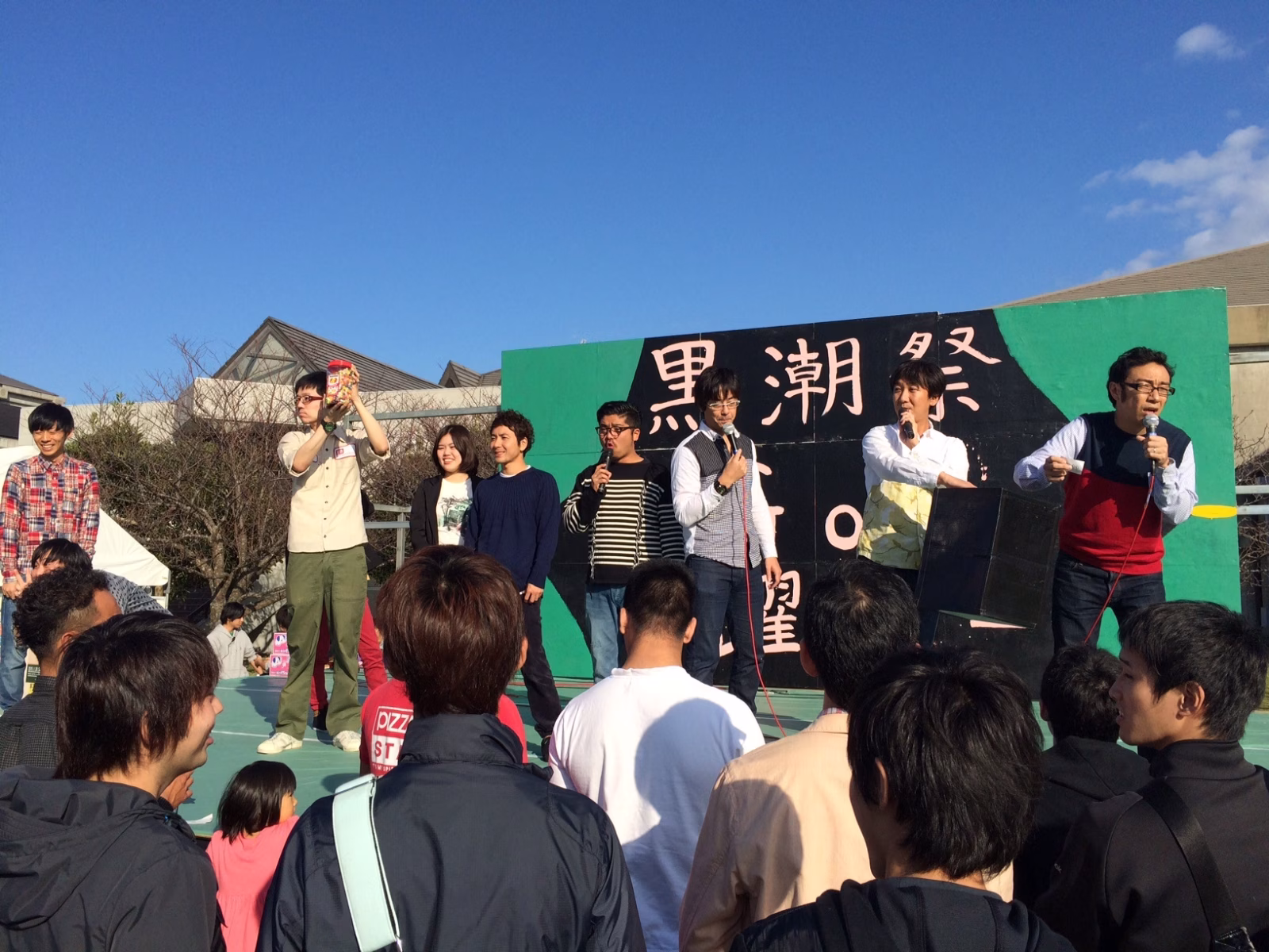 公開収録&ミニお笑いLive後も、 学園祭恒例の抽選会プレゼンターとして 外のステージにもお邪魔しました~!ここでも沢山の方にお越しいただき、感謝!!!※ミニお笑いLive・抽選会の模様は放送いたしません。 ご了承下さい。