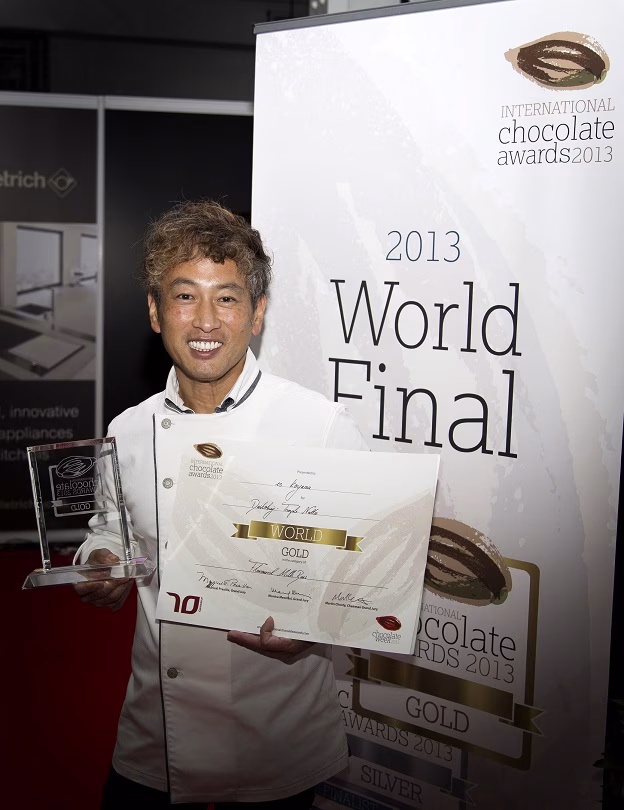 DJ番井のJack In The Box!! 今日のメッセージテーマ、メロメロ! 好きだから・・・極めよう!と思ってもなかなか 一筋縄ではいきませんが。 なんと先月兵庫県三田のショコラティエが、世界大会で日本人初の金賞を受賞しました!その方は、エスコヤマの小山進シェフ(↑写真)!!TV番組にも度々出演し、首相官邸でのワーキングランチ(午餐会)で フランス大統領のリクエストに応えてしまうなど パティシエ界でもすごい方なのですが・・・そんな小山シェフが、先月ロンドンで参加した 「 International Chocolate Awards2013」の世界大会に参加! 最も優れ、高品質なチョコレートを認定する国際的なチョコレートコンクールなのですが・・・ エスコヤマのチョコレートはなんと出品した5品すべてが金賞(1位)、および銀賞(2位)を獲得! 初出場・初受賞なだけでなく、日本人としても 初めての受賞という快挙を達成したんです!さらに 今回は3作品しか選ばれなかった 最優秀賞にあたる「ゴールド&クリスタル賞」! そのうち2つをエスコヤマが受賞するという、まさに現在のチョコレート界を語る上で 欠かせない存在なんです!!なんと、番井さんがガッツにガッツを重ね! その世界で最高位を受けた4品(しかも未発売!) を特別にサンフリに送っていただきました!