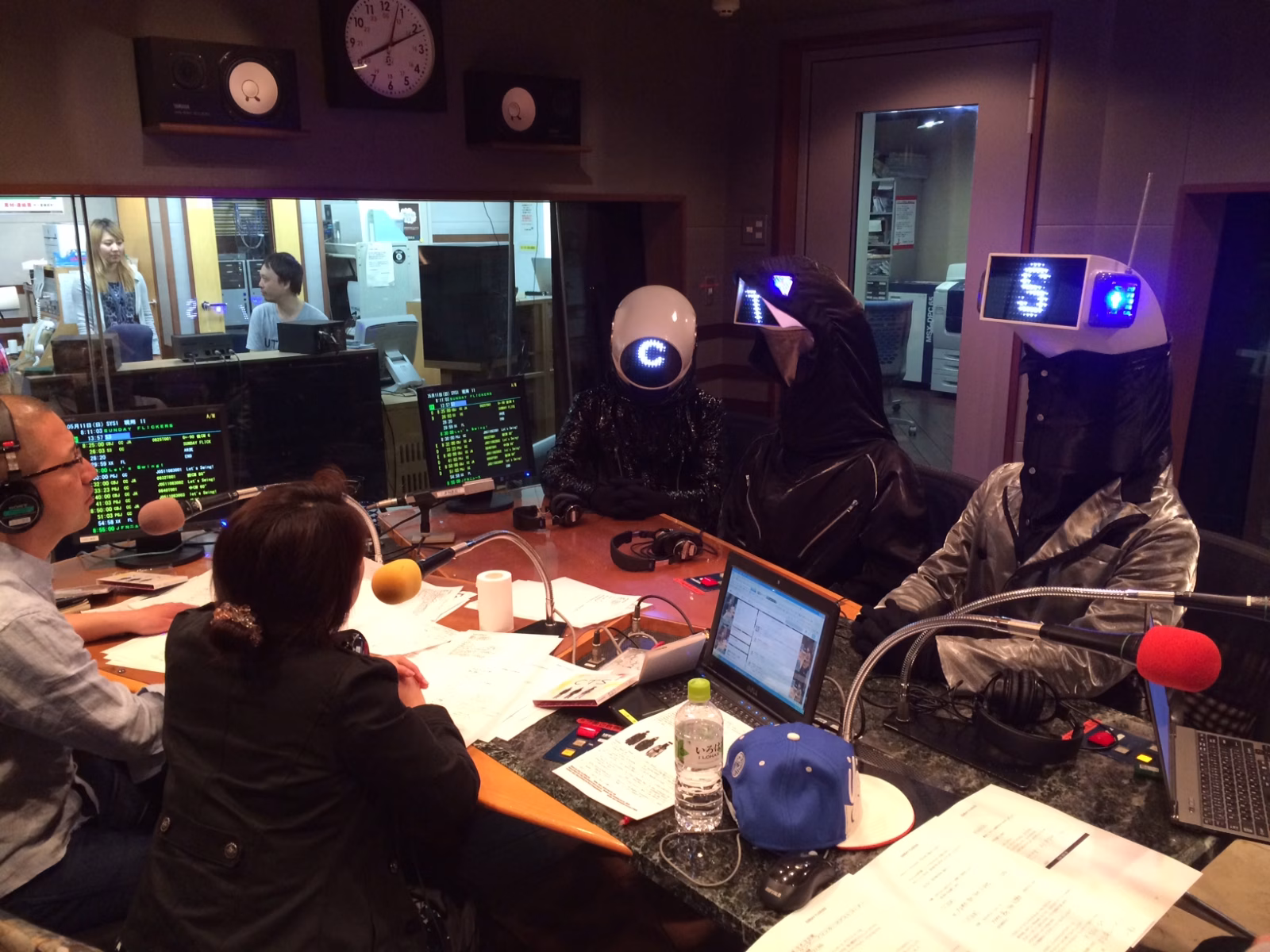 今日のゲストは、謎の覆面DJユニット「 CTS 」のみなさんです! お写真見てもらえれば分かりますがCTSの三人は覆面をかぶっているんです・・・ メンバーはそれぞれサークルさん(○)トライアングルさん(△)スクエアさん(□)となっています!! しかし皆さん色んな理由で喋りません!!なのでプロデューサーのDJ KAYAさん(写真右)に通訳をしてもらいながらの 進行でした!!しかしながら、アーティストとしての実力は本物! iTunesのダンスチャートでは、過去6作がすべてNo.1を獲得しているんです!!放送では、スクエアさんは液晶パネルにYes / Noが表示されるので、 yes/Noで答えられる質問をいっぱいしてみたり! 一之輔さんが勇気を出して突っ込んでみたり! 朝から盛り上がりました!曲もめちゃくちゃカッコイイです!!夢は紅白ということで、拝見できる日を楽しみにしています!!リリースや、ライブ情報などは公式サイトで チェックしてみてください!! ➡http://cts-official.com