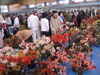 なんでも小さな花から大きな花まで200種類以上 色も白、ピンク、赤、紅白の絞りなどバリエーション豊か、 バラのような派手さは無いが、東洋的な美しさを持っているそうです!! 新潟県のこの地域ではボケの90%以上を生産しているため このイベントが行われているんです!ご担当の方にお話を伺ったところ、ボケの魅力は なんと言っても花の美しさ!満開になったときは感動もの! だそうです!
