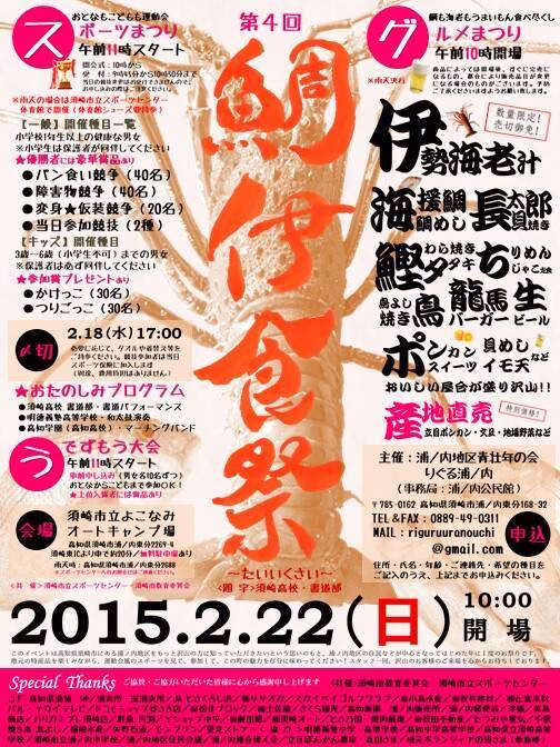 ミニ運動会ではパン食い競争や障害物競走など、 事前予約が必要な競技もありますが、 当日参加OKの競技もあります!!グルメでは、伊勢海老を使った伊勢海老汁は大人気! 毎年すぐに行列ができ、完売するそうです!そして今年は、地元浦ノ内中学校、須崎高校との共同事業で プロのフードコーディネーターや須崎市内の菓子職人の助けを借り、 学生が考えた立目ポンカンスイーツを販売!たくさん運動をして、浦ノ内のおいしいものを食べて楽しんじゃいましょう!詳しくはこちらから➡https://www.facebook.com/riguruuranouchi/timeline
