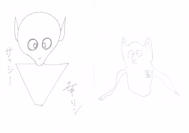 もしスラスラと読めていたらそれは異星人です!そして二人の想像する異星人のイラストがこちらです↓