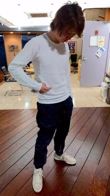こちら江川さんですが、何をしているポーズでしょうか??みなさん考えて、トークルームに書き込んでくださいね〜!