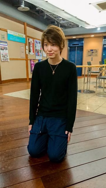 こちら江川さんですが、何をしているポーズでしょうか??みなさん考えて、トークルームに書き込んでくださいね〜!