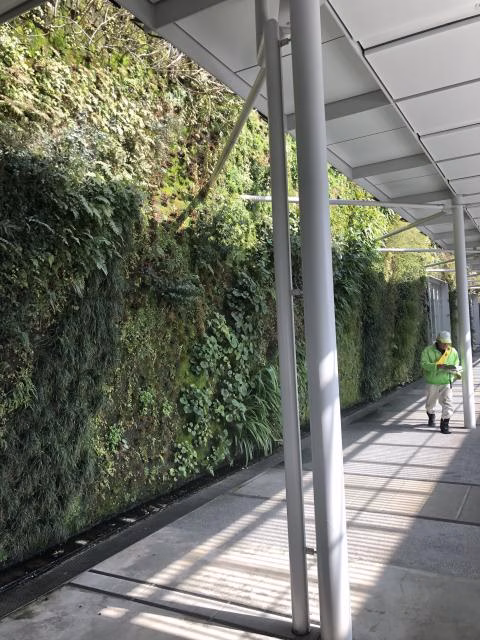 改札の前にある垂直の庭。