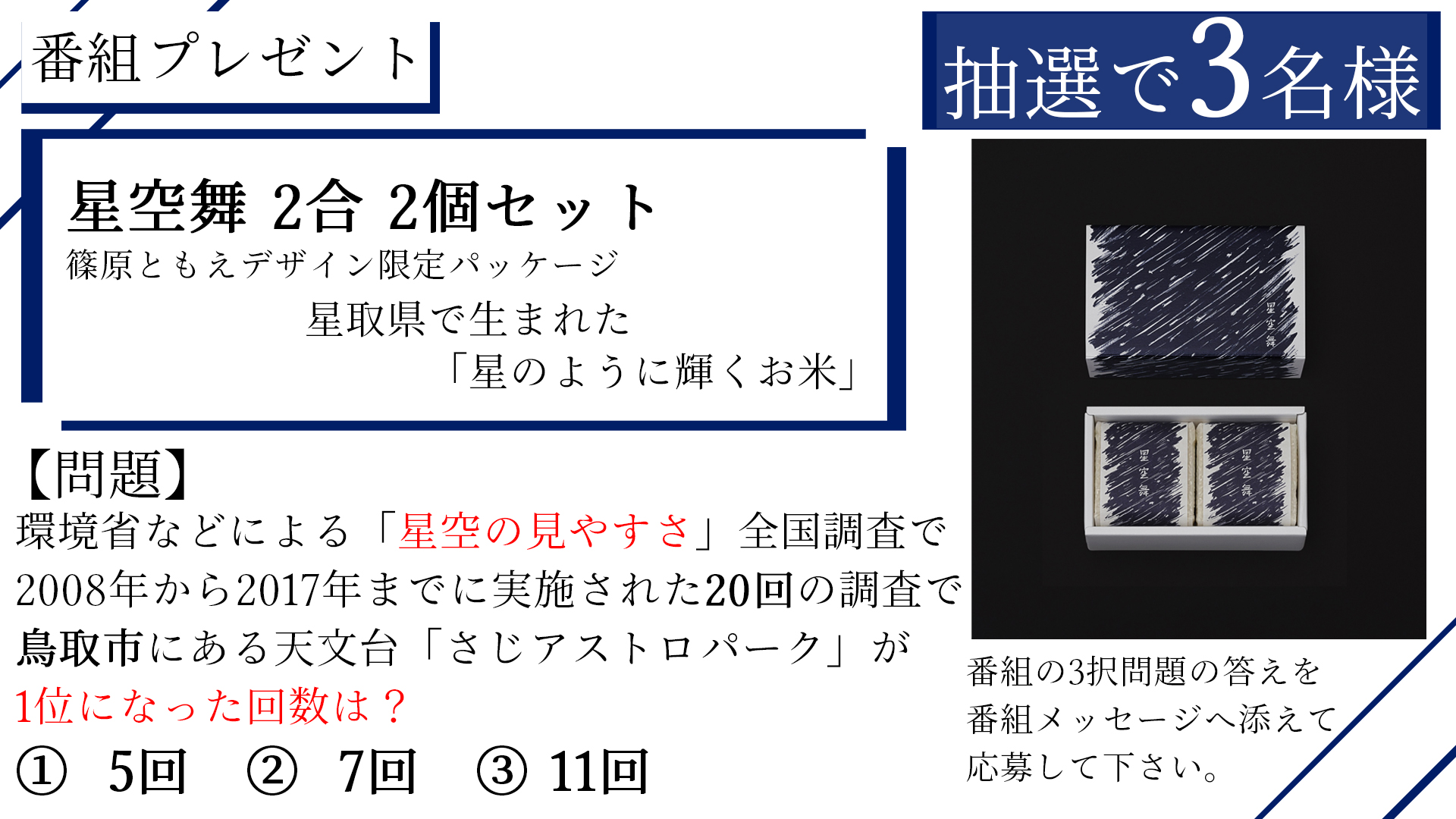 プレゼント応募は番組HPへメッセージを添えて送ってください。