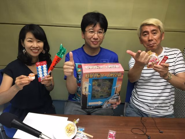 岸さんにはスタジオに実際に10円ゲームや駄菓子を持ってきていただきました。