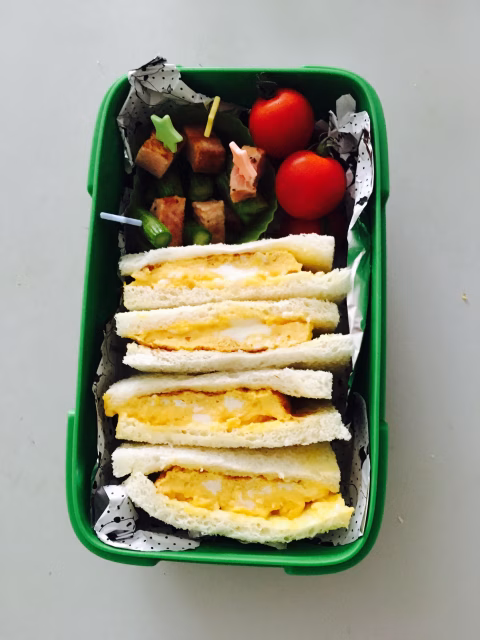 今週は作り置きではなく毎日お弁当を作ってみました。テーマは「みんな大好き卵」!① タマゴサンドウィッチ
