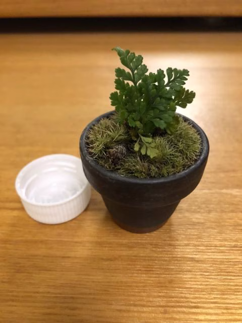 市川さんの癒し『ミニ盆栽』ペットボトルの蓋と比べてもこの大きさ!