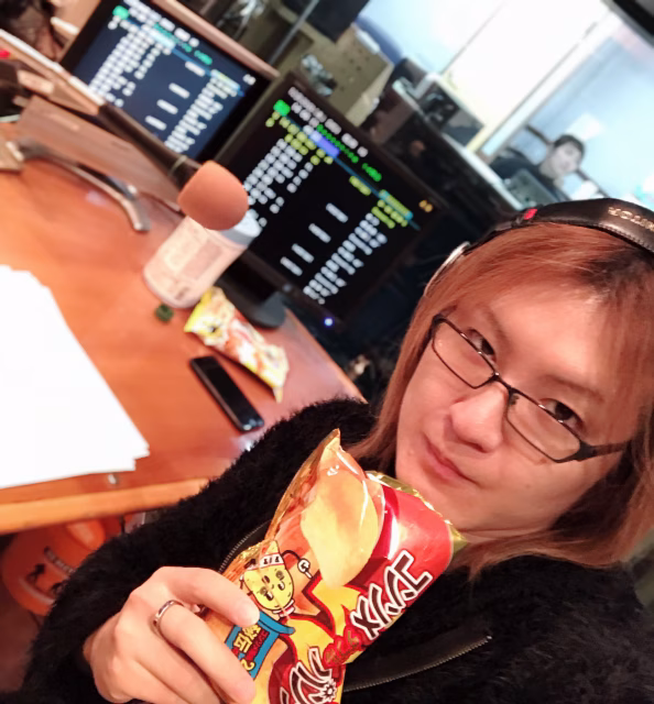 「この量が最高!」とポテチを片手にスタジオに入りました。