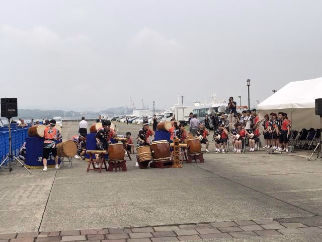 早鞆高校平家太鼓部のみなさんによる祝賀演奏も行われ、捕鯨船団を盛大にお見送りしました。