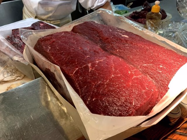 「なので"鯨の肉は固い"というイメージを植え込まれちゃった世代の方もいるかもしれませんが、新鮮な肉を使えばもっと美味しく作れます。」