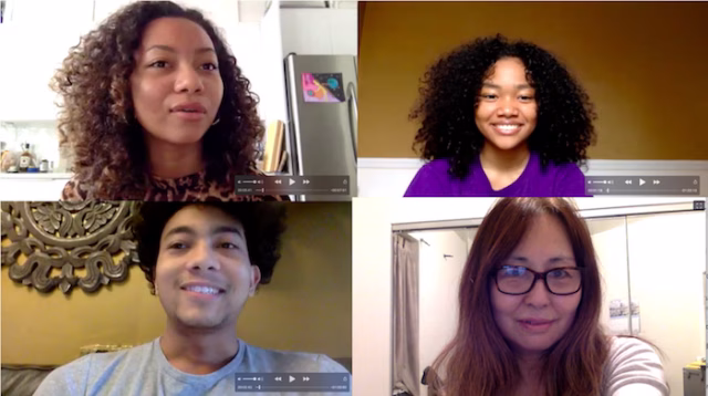 ミクア:全部オンライン、ビデオチャットみたいに、先生と他のクラスメートにいつも喋ってる。シェリー:じゃあ朝ちゃんと起きて、オンライン授業は何時から?ミクア:普通の高校は8時くらいから、11時くらいに終わって、それ終わったら大学のクラスがあるから、オンラインで。シェリー:全部オンライン?ミクア:全部オンライン。シェリー:それはzoomを使うの?ミクア:ZoomとあとBlackboardシェリ:それらを使って、それで普通に授業できてるの?ミクア:できてるけど、ちょっと難しいと思う。Wifi使えないとか。シェリ:授業をやっている途中に切れたりする?ミクア:うん、難しいシェリー:ケンジュとキサラはどう?ケンジュ:オンラインクラスうまくいってるけど、授業が楽になった。宿題の量も少なくなって来た。シェリー:キサラは?キサラ:結構楽になったし、もっと先生とのone on oneのコネクションもあるし、よくみんなのこと観れるしこういう風に、みんなの顔とか。タイプでチャットもできるし。